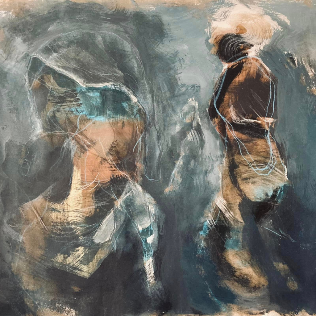 This painting was painted in 2020 the curfew period during the Corona pandemic. It is 110 cm high and 135 cm long. It was included by Azizieh in The Unknown Destination series. The painting was called Approach