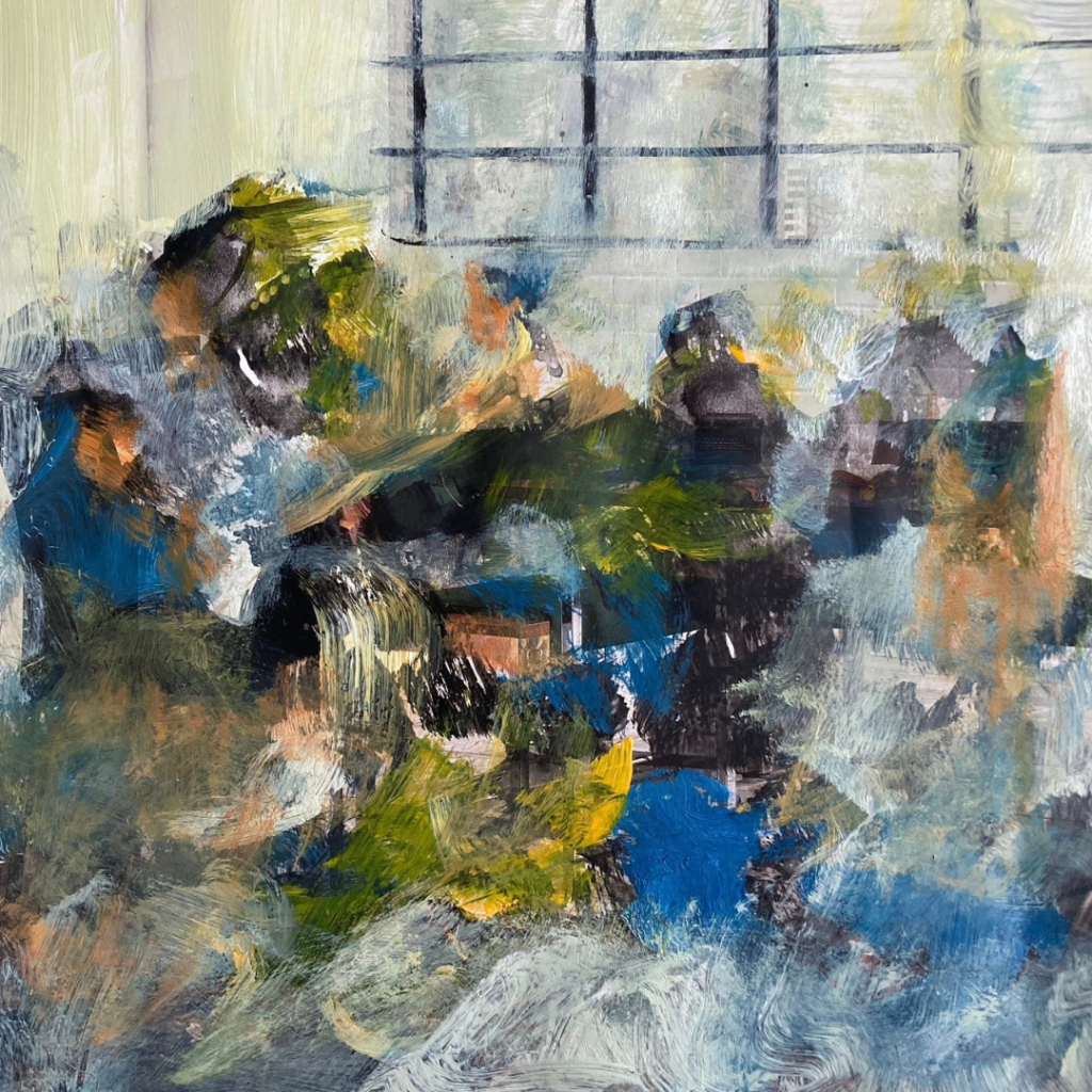 “In Traces of a Scene, the canvas becomes a record of disappearance. By layering thick, terrestrial pigments against fleeting, ethereal blues, I aim to capture the ‘after-image’ of a place. The work is not about the view itself, but about the marks left behind when the view is gone—the stains of color and the scars of texture that represent the persistence of a location in the mind’s eye.”