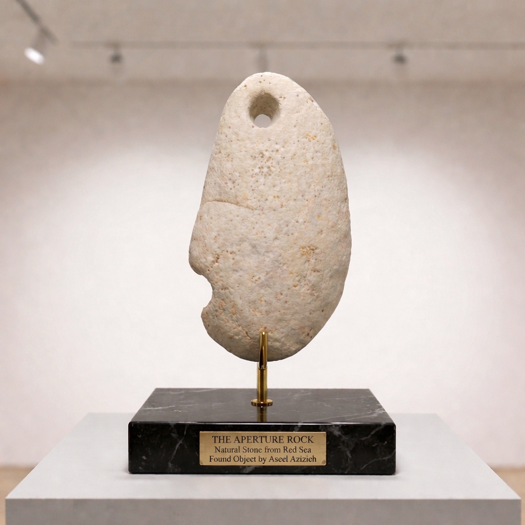 “In this work, the artist does not carve the stone, but rather curates the genius of the sea. By elevating a natural relic from the Red Sea to a gallery pedestal, the piece challenges us to find high art in the elements beneath our feet.”